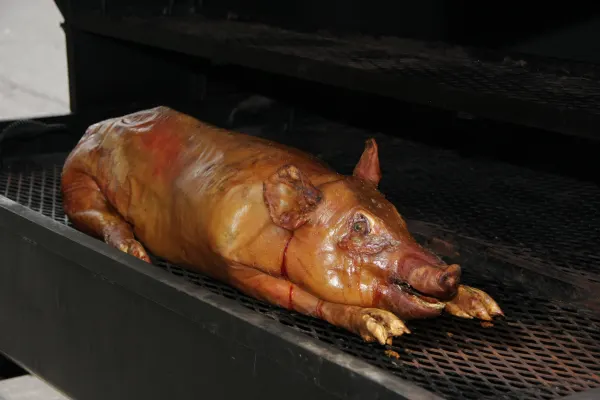 We cook on site at your location. We have a licienced and inspected food service facility where we make our home made BBQ Sauce, Beans, Red Potato Salad and others.