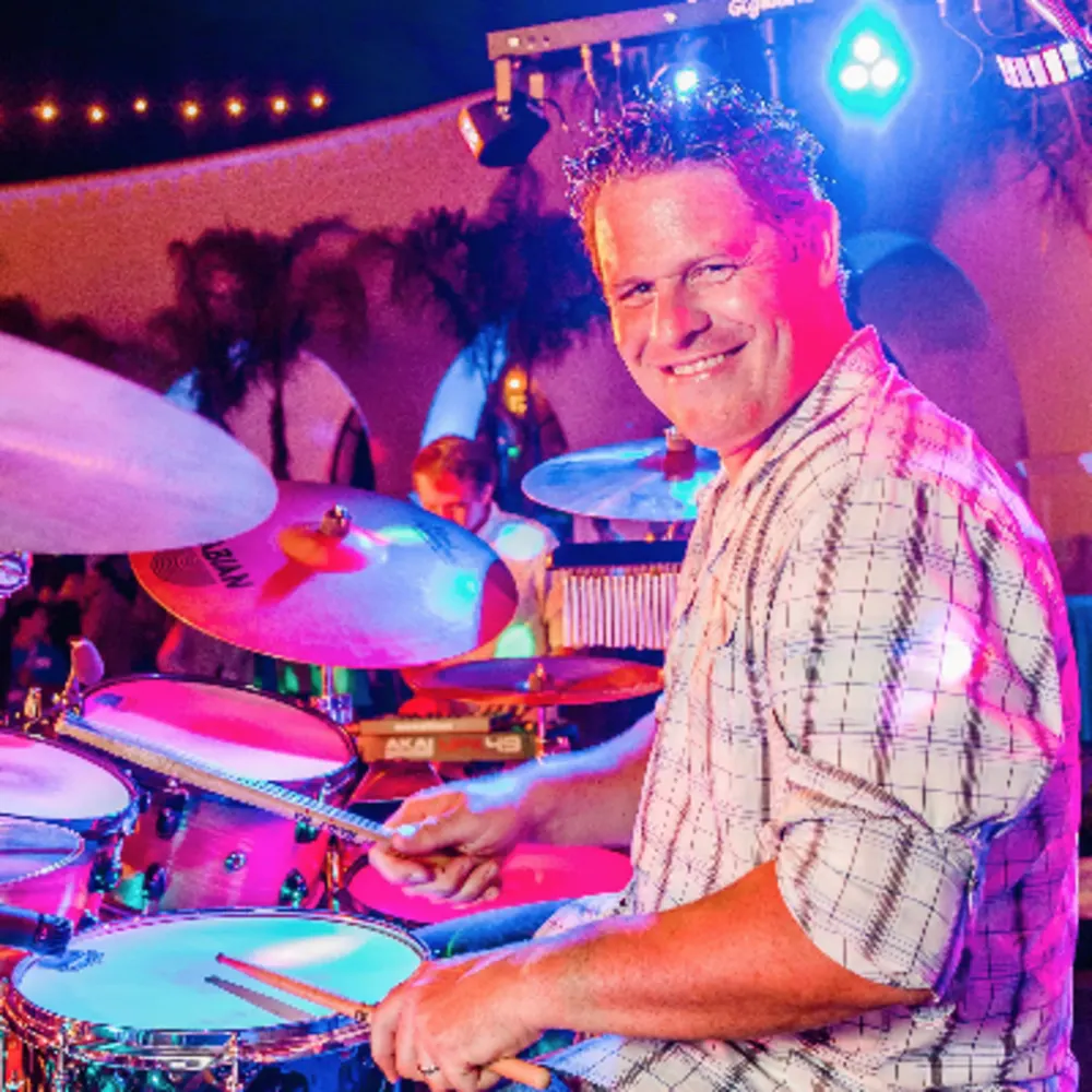 I have been performing on drums since I was in high school and I love the energy that a live band brings to a wedding or other event! I love hearing the band through our awesome sound system, and love seeing the excited faces of people dancing on the dance floor as we switch from song to song!